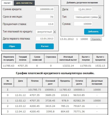 Рассчитать автокредитование с досрочным погашением поможет кредитный калькулятор. Это даст возможность оценить свои возможности и избежать неловких ситуаций с финансовой организацией. На официальном сайте ВТБ 24 есть раздел «Памятка по погашению кредита» с калькулятором. В пустые поля нужно вписать информацию о кредите, сумме долга, процентную ставку, срок автокредита. Заемщик также должен указать сумму, которую хочет внести, учитывая дату когда он это хочет сделать. Далее необходимо выбрать либо изменение срока платежа, либо изменение самого платежа. Сервис автоматически рассчитает сумму ежемесячного платежа, учитывая проценты и оставшийся срок.