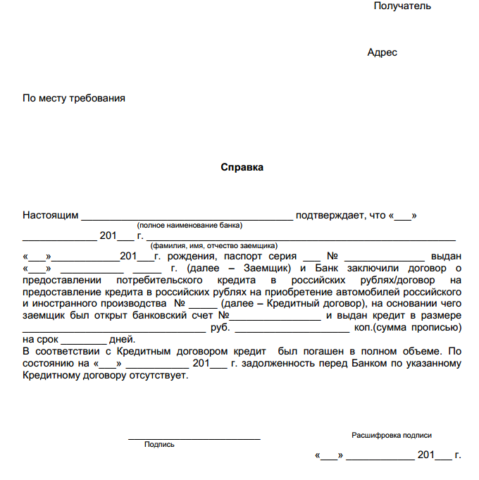 | Полное погашение | Необходимо предоставить заявление о погашении долга минимум за 1 день до предполагаемой операции.