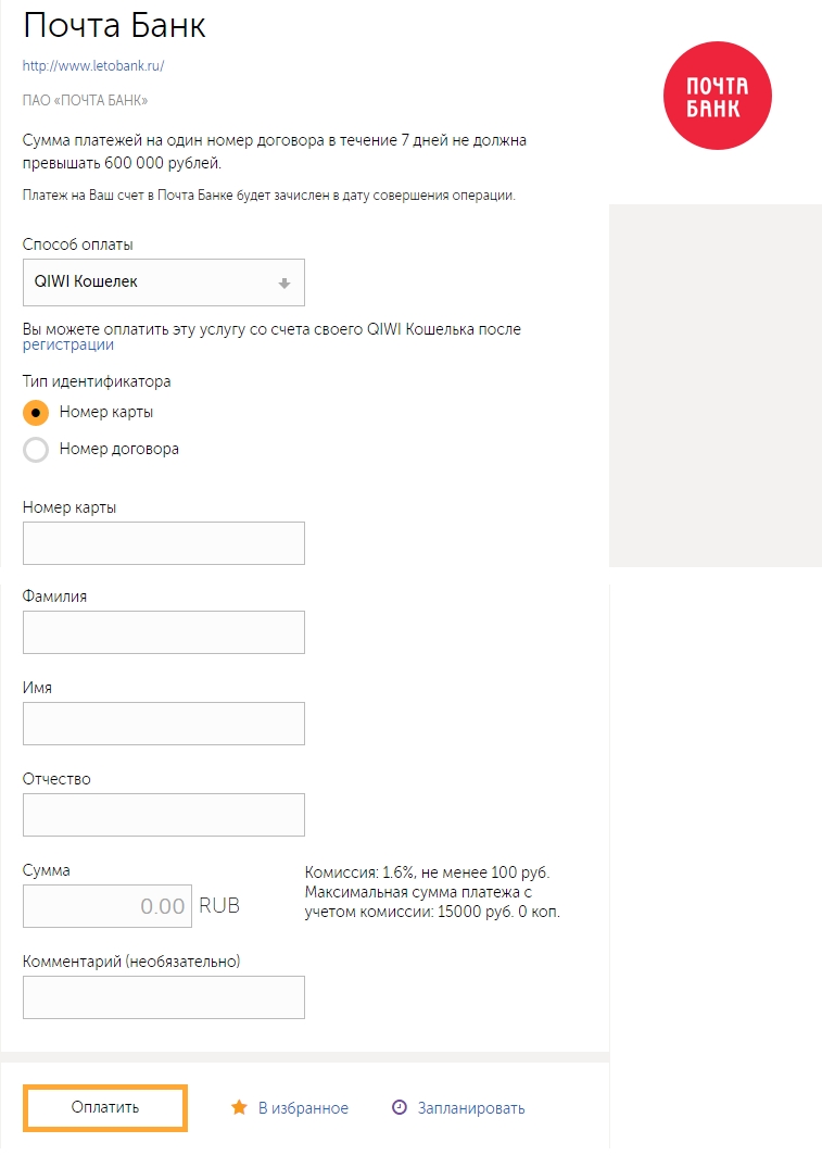 Как и где оплатить кредит Почта Банка?