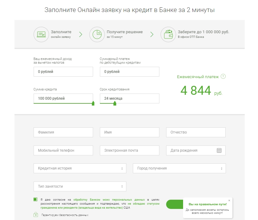 Клиенты «ОТП» могут оформить кредитный займ удобным способом: в стационарном режиме или же посредством онлай-сервиса.