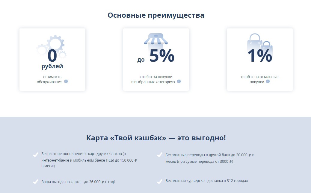 Владельцы карты «Твой кэшбэк» могут рассчитывать на ряд преимуществ в обслуживании: