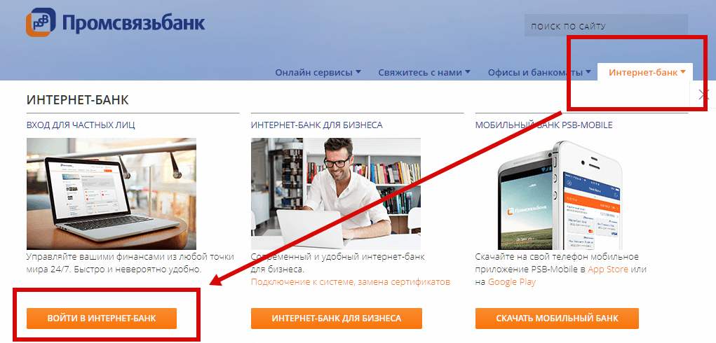 При пополнении карточки через интернет-банк Промсвязьбанка у клиента не возникает особых сложностей. Самое главное при выборе этого способа - быть клиентом банка. Для перевода через интернет-банк нужно авторизоваться на сайте или в мобильном приложении.