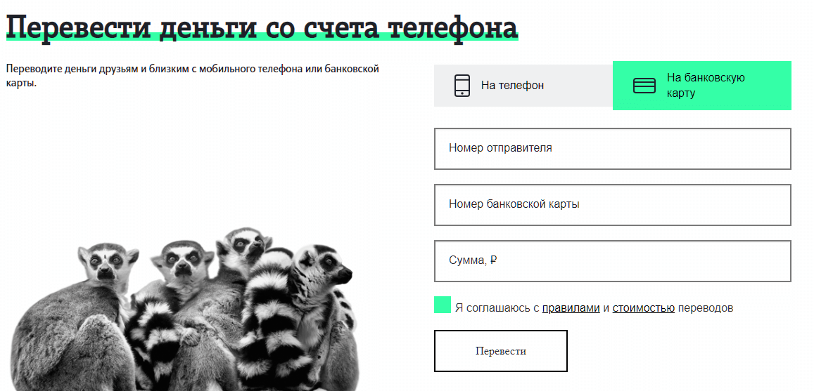 С помощью любого мобильного оператора можно отправить деньги с баланса телефона на счет банковской карточки. Клиенту достаточно зайти на сайт, открыть нужную вкладку и ввести номер.