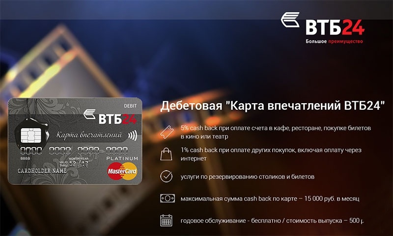 - в пакет входят следующие дополнительные карты: программа ВТБ "Коллекция", "Автокарта", "Впечатления", "Мир";