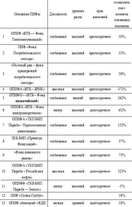 В состав входят открытые, закрытые и интервальные ПИФы.