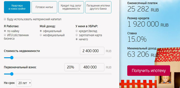 Ипотечный калькулятор УБРИР