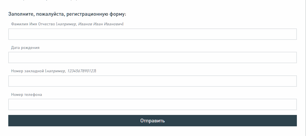 - заполнение формы анкеты, где необходимо вписать полные ФИО, номер закладной и номер сотового телефона.