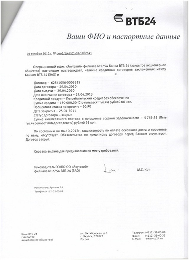 - Написать заявление в одолении банка о закрытии кредитного договора.