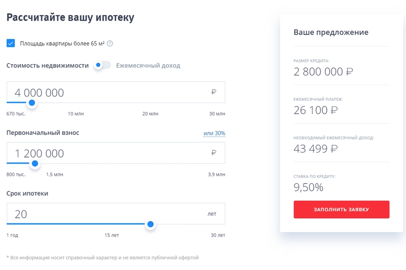 Для того, чтобы рассчитать примерную сумму ежемесячного платежа по ипотеке ВТБ на новостройки, вы можете воспользоваться специальными сервисами. Мы предлагаем вашему вниманию данный кредитный