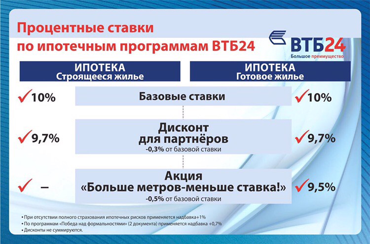 Всего в группу ВТБ входит три финансовые организации: ВТБ, Банк Москвы и Почта Банк. Давайте подробнее рассмотрим условия ипотеки в партнерах ВТБ: