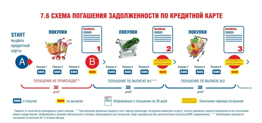 Проценты по кредиту начисляются только на фактическую задолженность - ту сумму, которая была потрачена заемщиком. В выписке от банка указывается крайний срок внесения платежей по задолженности, но специалисты рекомендуют вносить средства за пару дней до даты оплаты, чтобы избежать возникновения просрочки.