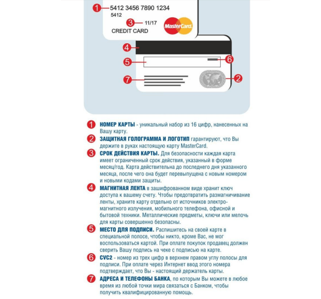 - При получении кредитной карточки владелец должен проверить правильность информации, нанесенной на пластиковую основу.