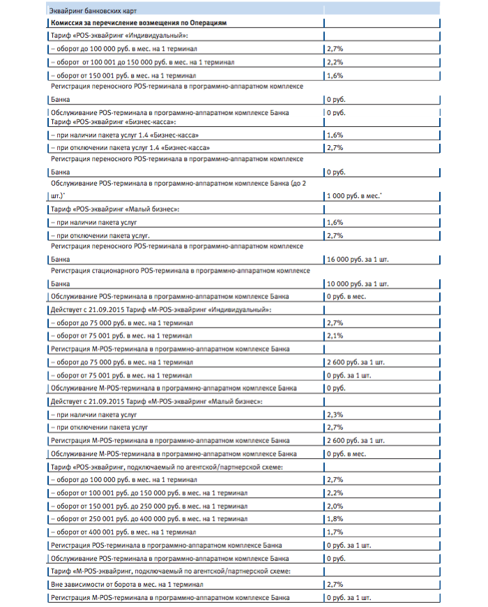 | POS-эквайринг «Малый бизнес» | 16 000 — за переносной; | бесплатно | 2,1-2,7% |