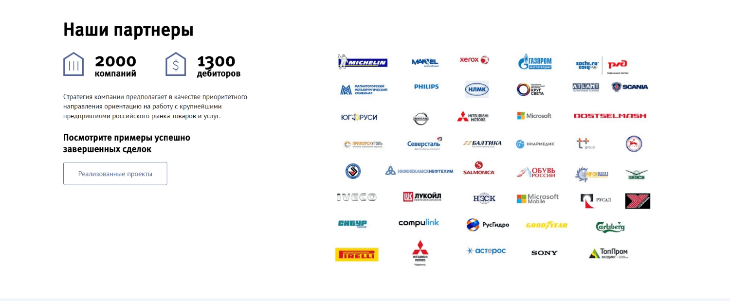 - Партнерами ВТБ уже стали свыше двух тысяч компаний и 1 300 дебиторов.