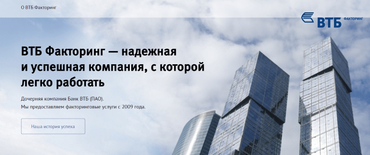 Лидером рынка, предоставляющим услугу факторинга, является банк ВТБ.
