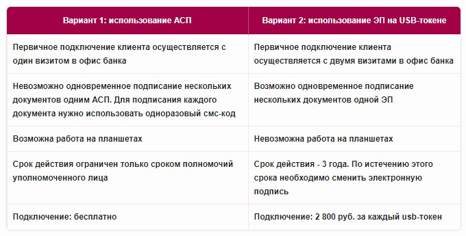 | Период действия может быть ограничен только сроком полномочий, установленным для конкретного лица. | Период действия: три года. По истечению трех лет клиент должен обратиться в отделения банка для смены ЭП. |