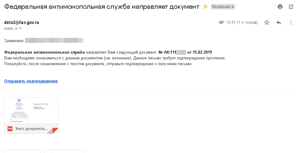 Пришел сегодня ответ от ФАС, чем спешу с вами поделиться.
