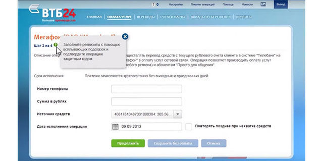 Погашение задолженности через ВТБ24-Онлайн