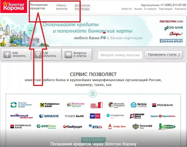 Золотая корона позволяет расширить количество организаций, в которых можно погасить задолженность. С этим сервисом любое отделение банков, входящих в данную сеть – место, где можно погасить кредит.