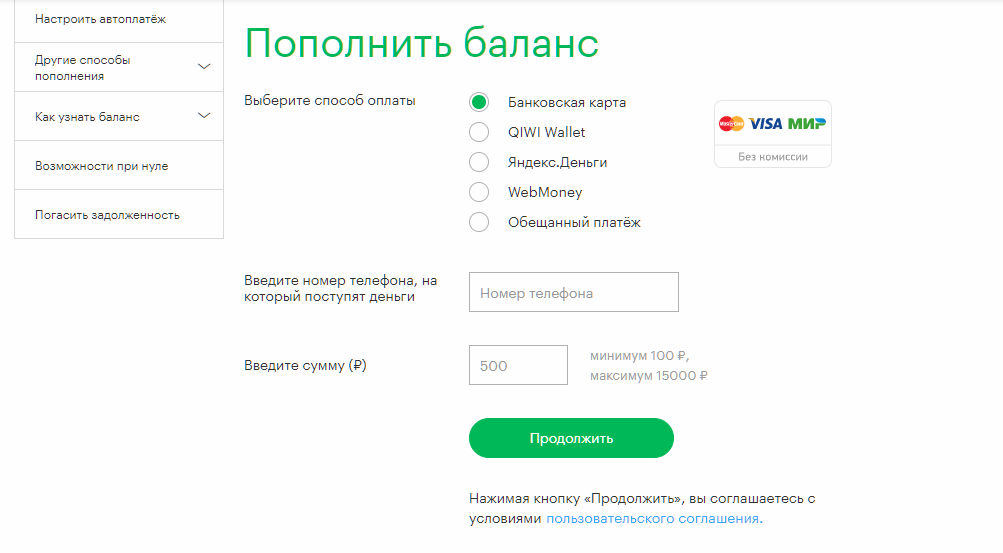 | Сайт оператора сотовой связи (Ростелеком, Билайн, Мегафон, Теле2, МТС) | Не взимается | В течение нескольких минут, максимальный возможный срок проведения платежа составляет до 24 часов. |