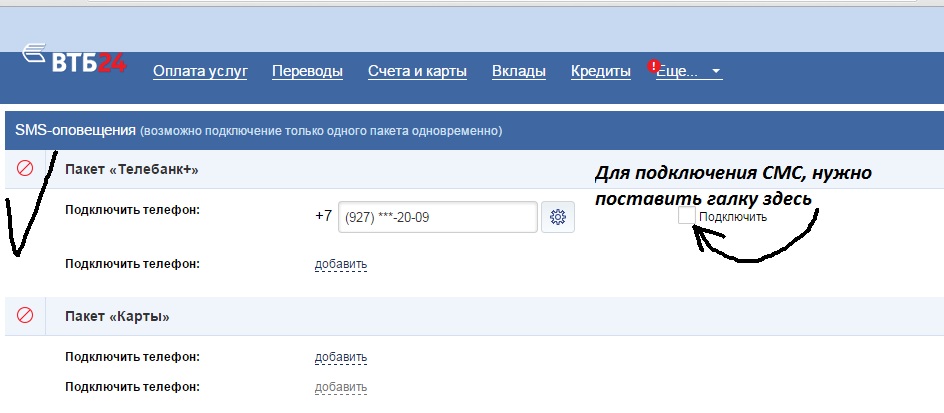 Пожалуй, самый удобный способ — это подключить сервис самостоятельно. Сделать это можно, войдя в личный кабинет на сайте ВТБ и введя логин и пароль. Далее нужно придерживаться следующей пошаговой инструкции: