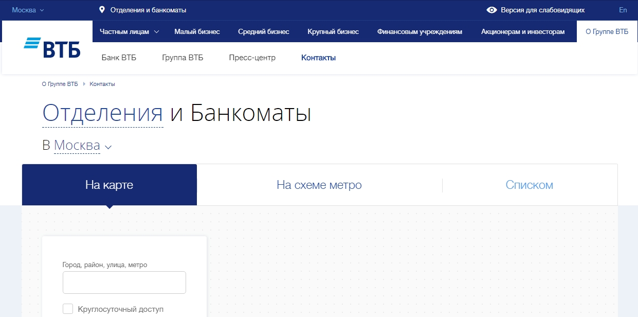 Как найти банкомат ВТБ с приемом наличных?