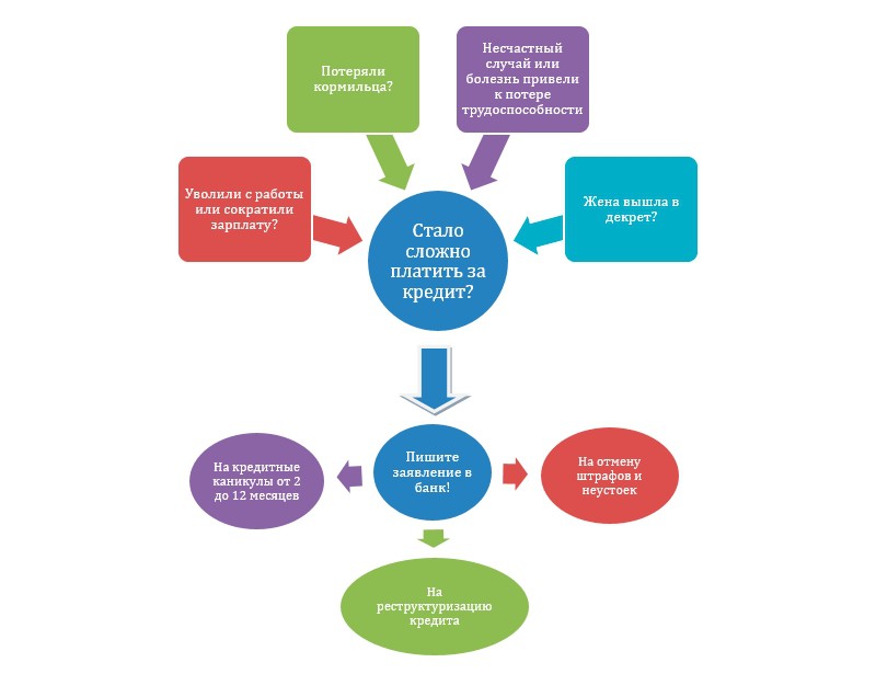 Еще один вариант - это индивидуальные условия. В данном случае могут быть разные схемы погашения кредита, в число которых входят пролонгация и установление персонального графика совершения выплат.