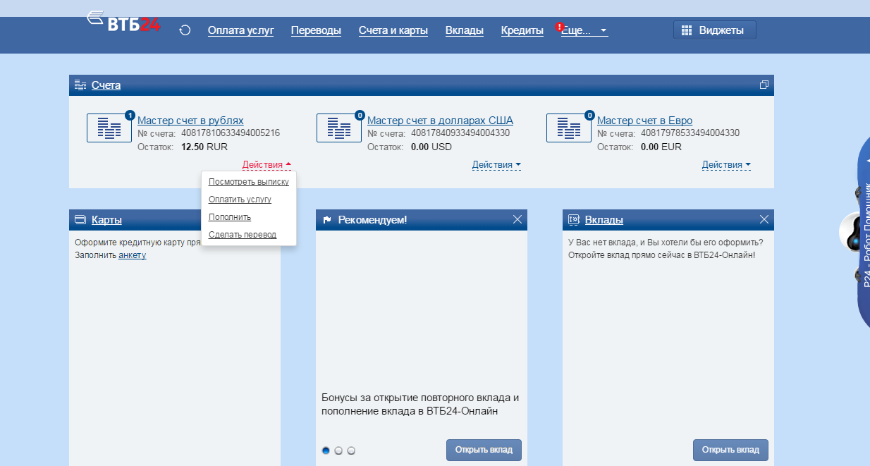 | Задавать вопросы | По всем вопросам специалисты ВТБ отвечают в режиме онлайн |