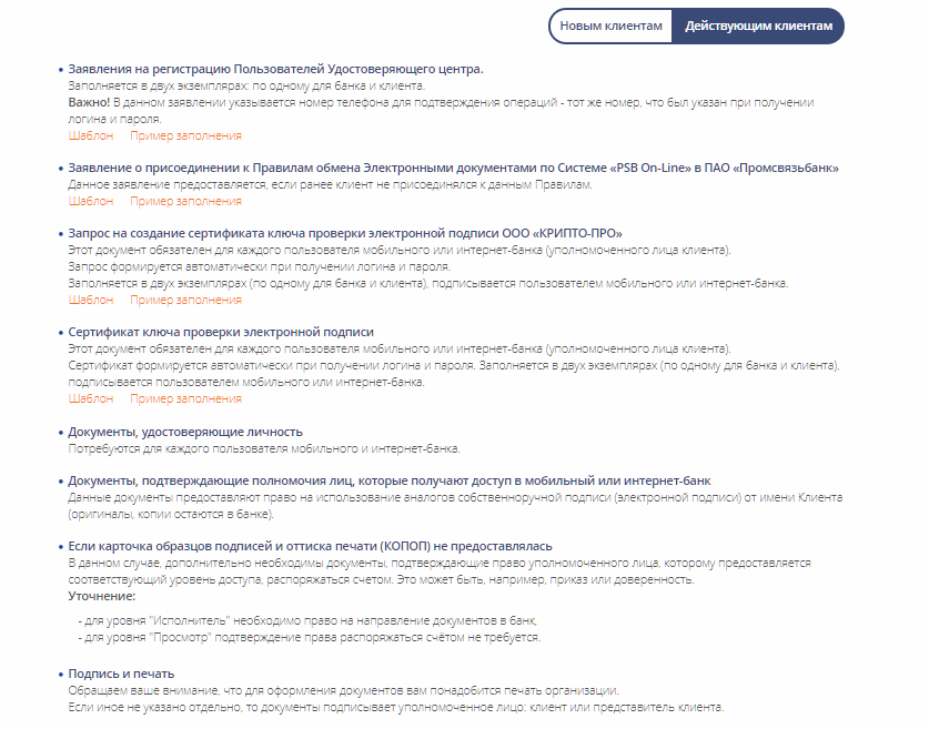 Для того, чтобы стать клиентом Промсвязьбанка, пользователь должен выполнить несколько простых шагов