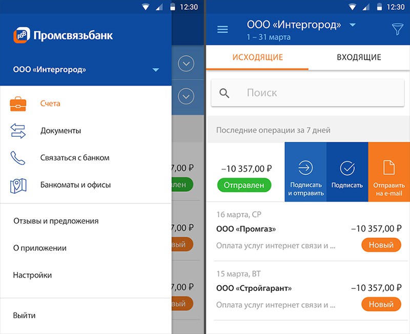 Бизнес-клиенты Промсвязьбанка имеют возможность работать в мобильном приложении и выполнять вход с помощью ввода логина и пароля. Программа «Мой бизнес» помогает в ведении дел и предлагает воспользоваться следующими преимуществами: