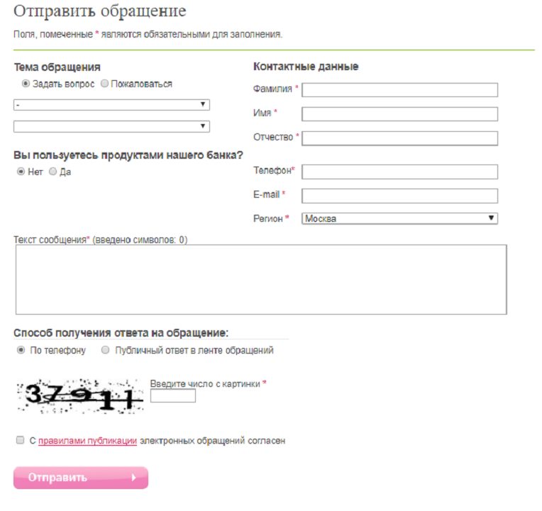 Подача жалобы через сайт банка