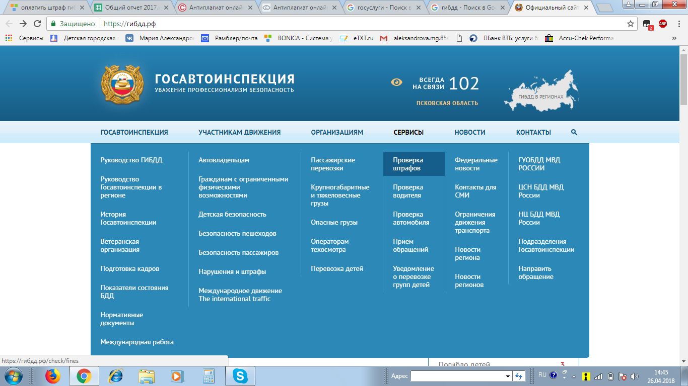 Войти в раздел «Сервисы»/«Проверка штрафов».