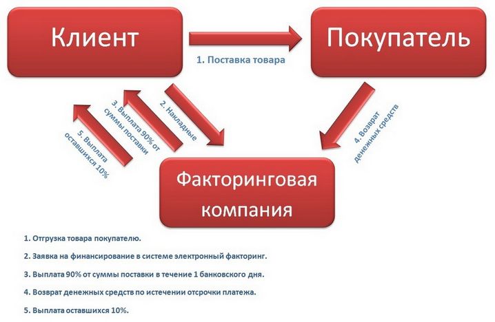 Механизм данной операции доведен до автоматизма. Клиент банка подготавливает документы, подтверждающие наличие денежного долга со стороны дебитора. Приняв и изучив бумаги, предоставленные кредитором, банк погашает долг в переделах 80-90%. В это же время сотрудники банка связываются с дебитором для обсуждения условий соглашения: в течение какого периода фактор получит обратно все кредитные средства с учетом комиссионных.