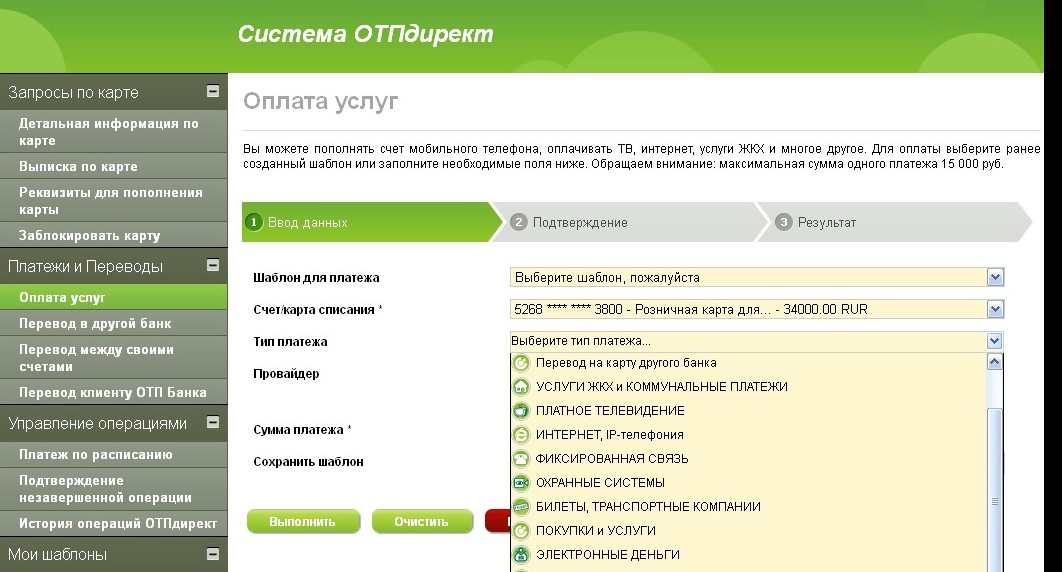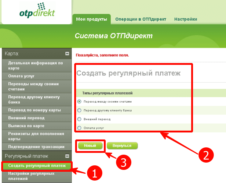 При необходимости осуществить перевод средств со счета на карту клиента «ОТП», необходимо придерживаться следующей инструкции: