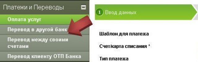 Клиент «ОТП» также имеет возможность осуществить транзакцию внутри банка: с одного личного счета на другой. Для выполнения данной операции необходимо придерживаться простого алгоритма действий: