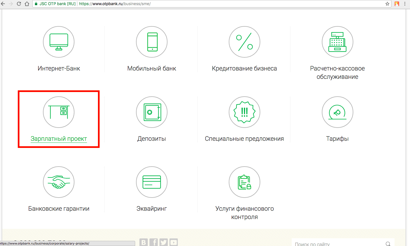 В браузере открыть главную страницу официального сайта «ОТП».
