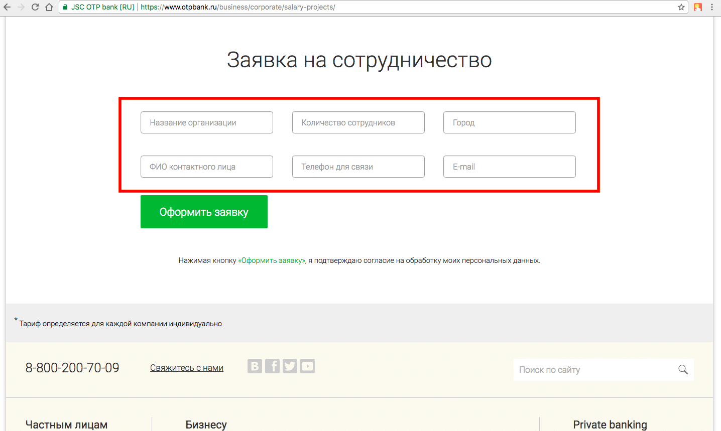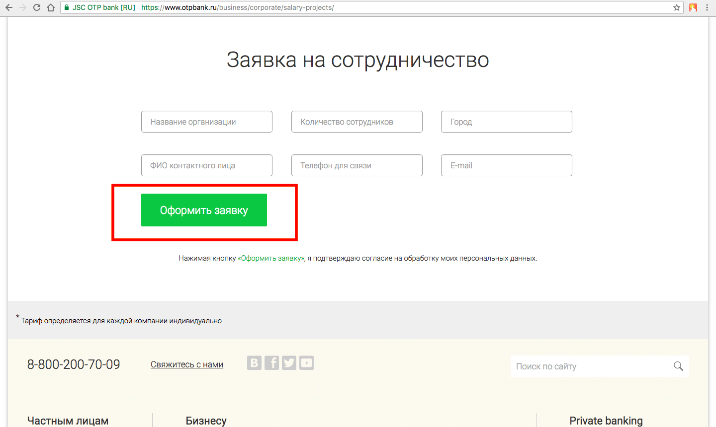 Кликнуть на зеленую кнопку «Оформить заявку».