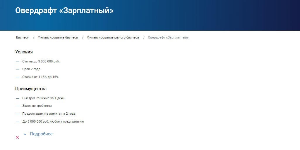 Тариф «Зарплатный» подойдет для тех, кто хочет открыть овердрафт в течение одного дня без обязательного внесения залога и с возможностью получения до трех миллионов рублей любым предприятием.