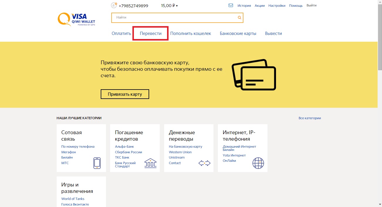 Существует также много других популярных способов пополнения счета. В случае отсутствия возможности выполнить платеж без комиссии, какой-то из различных сервисов точно будет актуальным.- Первый способ — это перевод средств с одной карты на другую. Этот вариант обладает весомыми преимуществами: моментальное зачисление средств, взимание адекватной комиссии, которая составляет 0,95% от общей суммы платежа.