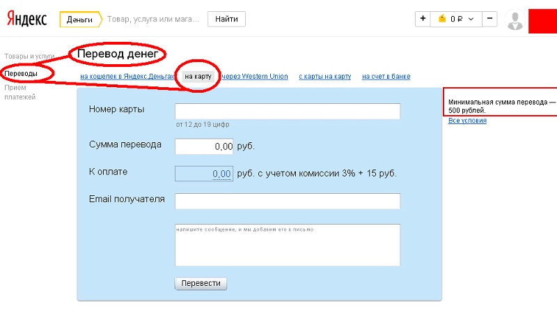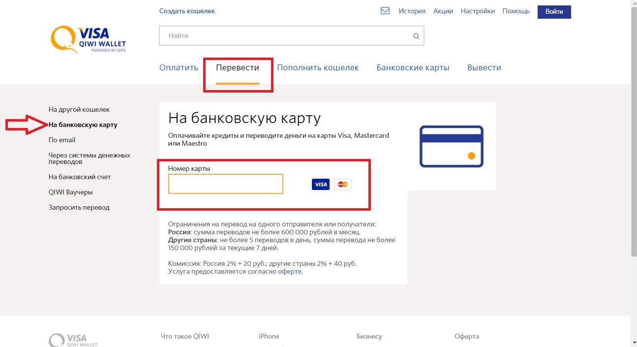 - Выберите пункт «На банковскую карту».