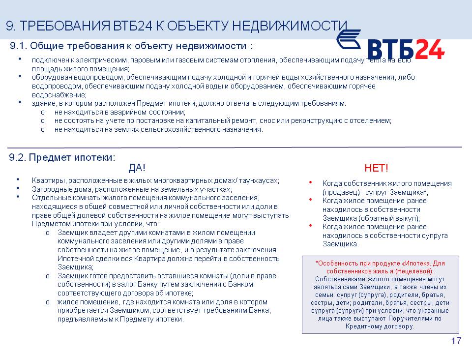 К потенциальным заемщикам на ипотеку в ВТБ выдвигаются следующие требования: