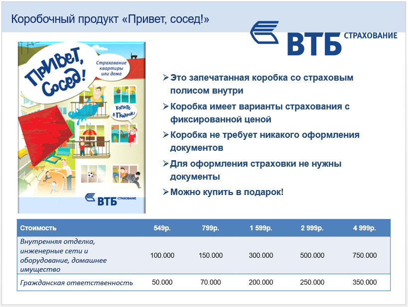 Полис "Привет, сосед!" можно купить как на официальном сайте ВТБ, так и у посредников.
