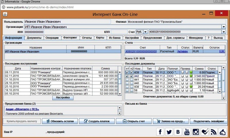 Промсвязьбанк разработал удобную систему дистанционного обслуживания своих клиентов. Юридические лица могут осуществлять обмен важными документами, следить за движением средств на счету, получать информацию от ПСБ в рамках сервиса «Банк-клиент».