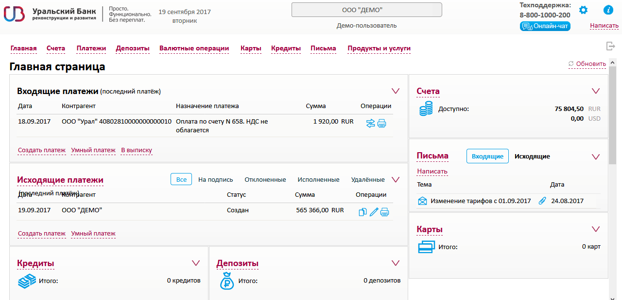 Расчетно-кассовое обслуживание в «Уральском банке реконструкции и развития» включает комплекс финансовых услуг. Перечень опций зависит от выбора тарифного пакета: