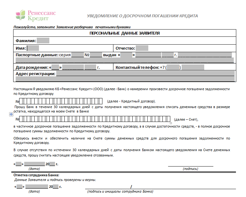 Банк «Ренессанс Кредит» также предоставляет своим клиентам возможность закрыть кредит досрочно. При этом нет ограничений по сумме, способу или дате. Рассчитаться с банком можно уже спустя месяц после заключения договора, что очень выгодно и лояльно по отношению к клиентам.