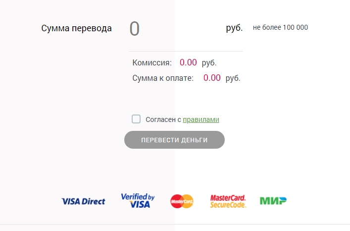 Для осуществления перевода средств между картами необходимо загрузить страницу сервиса, после чего в строках ввода информации указать следующие данные: корректный мобильный номер; номер карточки, привязанной к МПС, а также срок ее действия и секретный код CVC; номер действующего счета в банке «Ренессанс Кредит». Затем нужно указать желаемую сумму перевода (с обязательным условием соблюдения лимита), а также подтвердить свое согласие на обработку персональных данных. Для завершения операции необходимо нажать на зеленую кнопку «Перевести деньги».