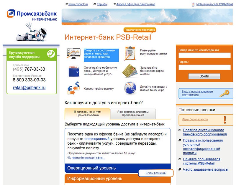 При возникновении любых сложностей или в случае необходимости получения инструкций по алгоритму выполнения различных операций, клиенты могут обратиться за консультацией на горячую линию «Промсвязьбанка».