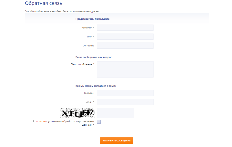 специальную форму на сайте банка. Для этого необходимо перейти по ссылке, в форме указать следующие данные: