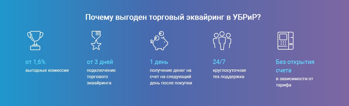 | Терминал предоставляется «УБРиР» | 1,8% и выше | Не менее 1000 рублей в месяц | Бесплатно |