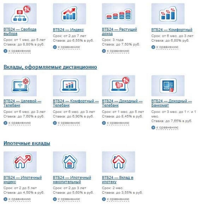 ВТБ предлагает своим клиентам открыть вклад по одному из следующих тарифов: